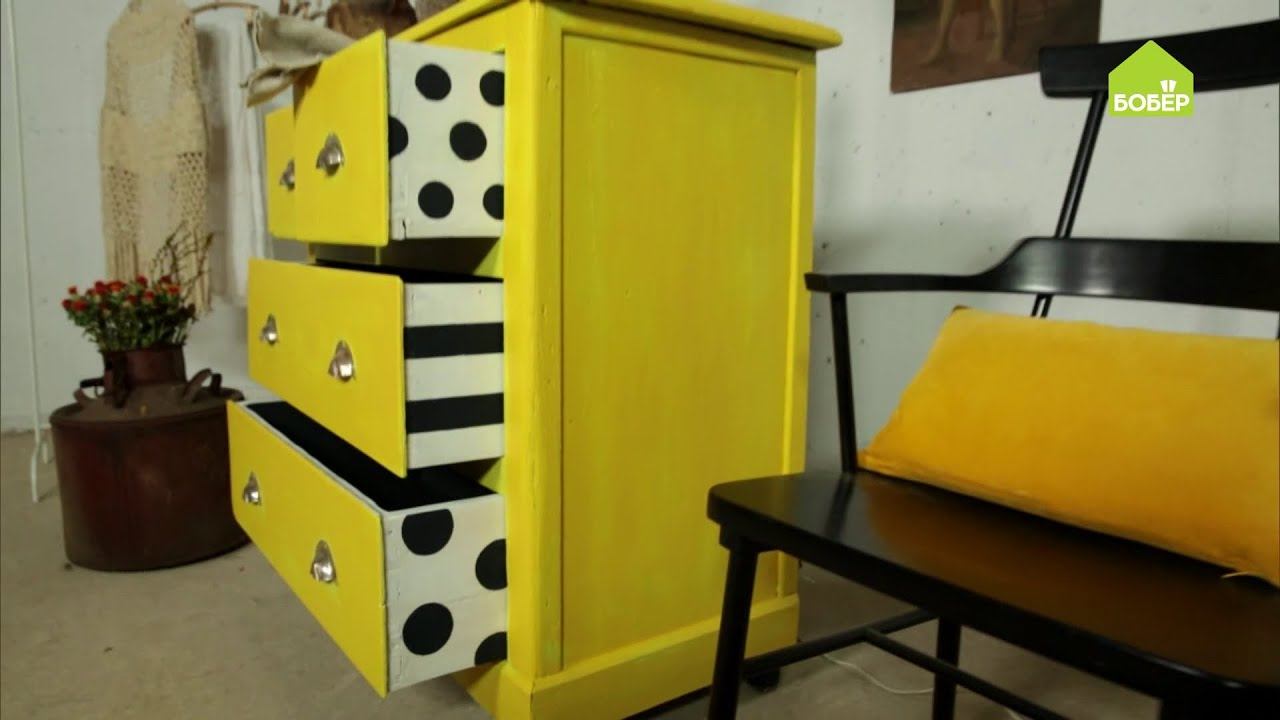 Как покрасить комод. Стильная перекраска старого комода. Как нанести рисунок на ящики комода