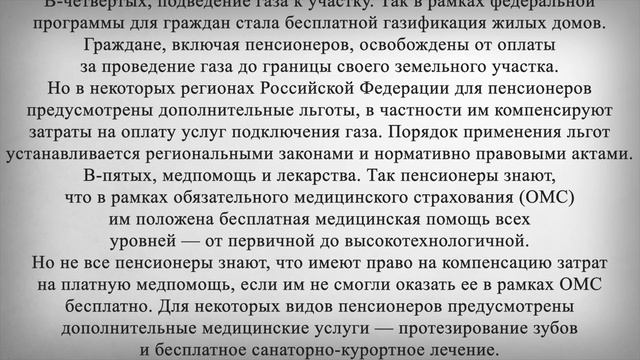 с 1 Января 2023 года Пенсионеры по этому СПИСКУ НЕ ПЛАТЯТ! В этом выпуске, мы сообщим Вам, полный список всех случаев, за что пенсионеры могут не платить уже в следующем году. Важно помнить, что пенсионеры законодательно освобождены от целого ряда обязательных платежей от налогов до оплаты за капремонт и коммунальные услуги. Этот перечень постоянно дополняется и изменяется. Мы выяснили, каким он будет уже с 1 января следующего 2023 года, а Вас просим заранее поставить лайк если Вам нравится подобный формат выпусков, написать какие ещё темы Вас интересуют и подписаться на канал что бы не пропустить новые выпуски и ответы на ваши вопросы. А теперь давайте начнем разбирать весь список по порядку: Во-первых, оплата государственной пошлины. Благодаря поправкам в статью 333,38 Налогового кодекса Российской Федерации, пенсионеры освобождены от уплаты государственной пошлины за удостоверение нотариусом: доверенностей для получения пенсий и пособий, свидетельства при наследовании дома или квартиры, если пенсионер проживал там с наследодателем и продолжает там жить. При этом пенсионерам все равно придется платить за услуги нотариуса при осуществлении этих нотариальных действий. На них новая льгота не распространяется. В МФЦ от госпошлины пенсионеров освободили при переоформлении документов на недвижимое имущество, приобретенное до 1998 года, если сведений о ней до сих пор не было в Едином государственном реестре недвижимости. Во-вторых, банковская комиссия за обслуживание карты "мир". Так при оформлении банковской карты национальной системы платёжных карт (НСПК) «МИР», для получения на нее пенсии и социальных выплат пенсионера освобождают от комиссии за ее годовое обслуживание. Выдача наличных денег через банкоматы банка, где обслуживается карта, тоже является для пенсионеров бесплатной. В-третьих, имущественные налоги. Так по нормам статьи 391 Налогового кодекса Российской Федерации и статьи 407 Налогового кодекса Российской Федерации предпенсионеры и пенсионеры освобождены от уплаты земельного налога и налога на имущество. Им не нужно платить налог, если они владеют: земельным участком площадью до 600 квадратных метров; квартирой или комнатой; жилым домом; гаражом; хозяйственной постройкой на участке площадью до 50 квадратных метров; помещением для творческой мастерской. Если у пенсионера в собственности несколько объектов недвижимости одного вида, пенсионеру придется выбрать для освобождения от налогообложения один из них. Кроме того, по нормам Налогового кодекса Российской Федерации пенсионеры имеют право на льготы по транспортному налогу, в том числе и на полное освобождение от него. Как правило от налога освобождаются автомобили отечественного производства с мощностью двигателя до 150 лошадиных сил. Порядок применения льгот определяют власти регионов Российской Федерации своими нормативными актами и законами. В-четвертых, подведение газа к участку. Так в рамках федеральной программы для граждан стала бесплатной газификация жилых домов. Граждане, включая пенсионеров, освобождены от оплаты за проведение газа до границы своего земельного участка. Но в некоторых регионах Российской Федерации для пенсионеров предусмотрены дополнительные льготы, в частности им компенсируют затраты на оплату услуг подключения газа. Порядок 