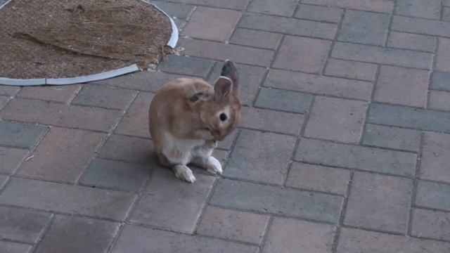 Кролик Крош выходит во двор и начинает умываться.