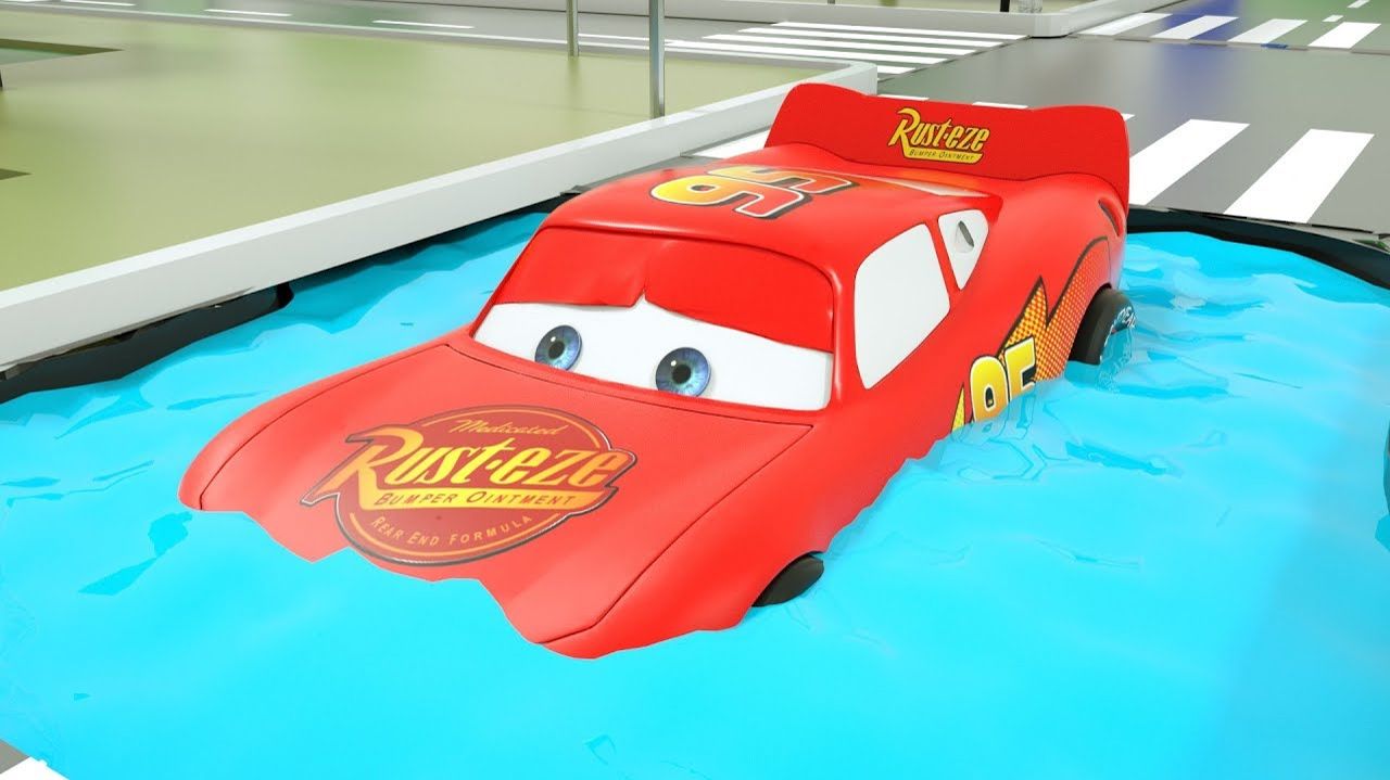 Колеса Молнии Маккуина приклеены к бассейну с водой. Сменные шины для малышей из мультфильма Тачки 3
