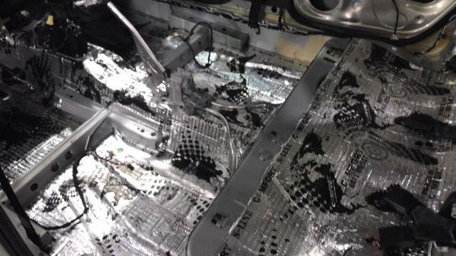 Если тойотовцы родную шумоизоляцию обильно кладут на пол, а в остальные места вообще не ложат, но немцы отличаются другим подходом - в этом поло она есть везде, но это лишь формальность. Кусочек на арке, кусочек под ногами пассажира, кусочек в двери и так далее. Вроде как и есть, еще и на всех элементах, но этого ничтожно мало. Для достижения нормального эффекта нам необходимо будет закатать все голые поверхности в несколько слоев вибро- и шумоизоляции. Разница между нашим подходом и заводским очевидна, ведь на конвейере автомобиль делают для кого-то, а здесь владелец озадачился сделать его под себя, а такую работу вполне можно поручить нашим мастерам, у них каждая машина делается с любовью, словно своя.