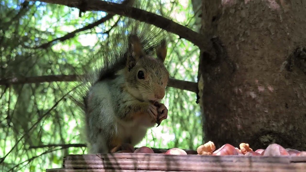 Серый с рваным ухом грызёт кедряшки