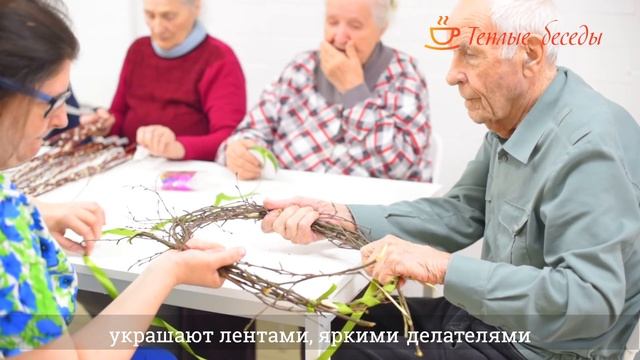 Узнать больше о нашем пансионате ► https://clck.ru/FhuFP Читать отзывы на сайте ► https://clck.ru/FhuFU Обращайтесь к нам! ► https://clck.ru/FhuFb +7 495 108-48-21 #уходзапожилыми #вербноевоскресенье #теплыебеседы С приходом весны и тепла растения начинают цвести. Одно из первых деревьев, отзывающихся на весеннее тепло является верба. Её веточки покрываются нежными, пушистыми почками и вместе с её цветением приходит один из самых главных, самых добрых и милосердных праздников - Вербное воскресенье. В пансионатах теплые беседы бабушки и дедушки с удовольствием готовятся к празднику. Одна из традиций Вербного воскресенья - это украшение дома. Из веток вербы, берёзы, ивы мастерили праздничные венки. Для такого венка гибкие веточки берёзы нужно сплести по кругу, закрепить между собой. Они послужат основой, которую можно разнообразно украшать. В венок вплетают веточки вербы, украшают лентами, яркими делателями, зелёными веточками других растений. Чтобы верба послужила дольше, больше радовала глаза с её помощью декорируют композиции к пасхе - пасхальные корзины. Веточки оплетают вокруг ручек корзин, вставляют по периметру, создавая своеобразное гнездо для яиц. В результате получаются украшения, хранящие тепло рук, создающие праздничное настроение. Но главное это не достигнутый результат, а предвкушение праздника, время проведённое вместе за общим делом и теплыми беседами