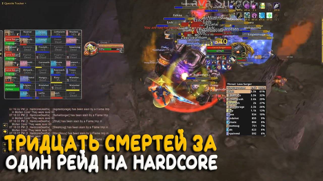 Начни играть на WoWCircle https://wowcircle.net/go/wargul_promo Сегодня ночью, на американском сервере Hardcore WoW Classic во время похода в Molten Core погибли тридцать игроков. Тридцать более менее одетых персонажей отправились на кладбище в течении одной минуты! Что произошло этой ночью? Как имея столько опыта и химии могло произойти такое? Тем более в Огненных Недрах