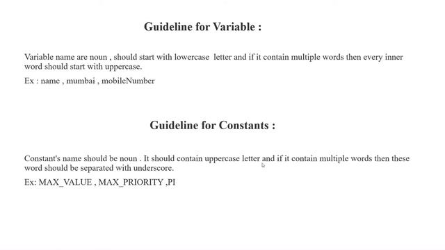 Following coding guideline increase readability and maintainability of code. Discussed Guideline for Class , Method , Variable , Interface , Constants , Comments, Whitespace , Curly braces.