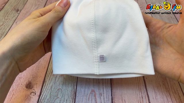 348592 Шапка с ушками и изображением панды молочная