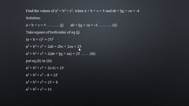 find the value of a2 + b2 + c2