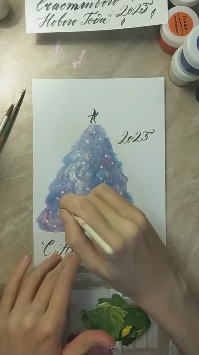 Мастер-класс открытка к новому году - новогодняя ель гуашью