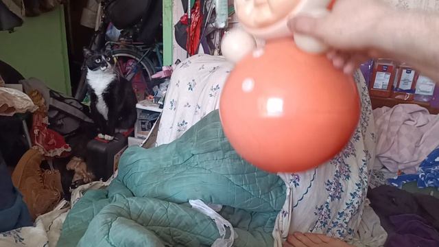 Киска боится неваляшку