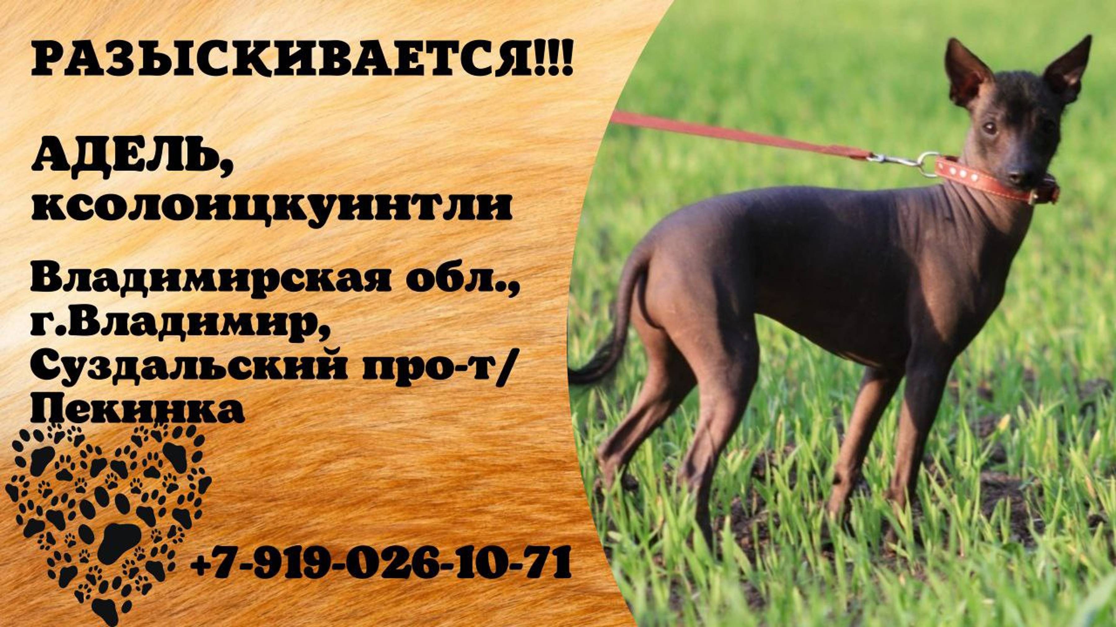 Пропала собака! АДЕЛЬ. Ксолоицкуинтли. Владимирская обл, г. Владимир