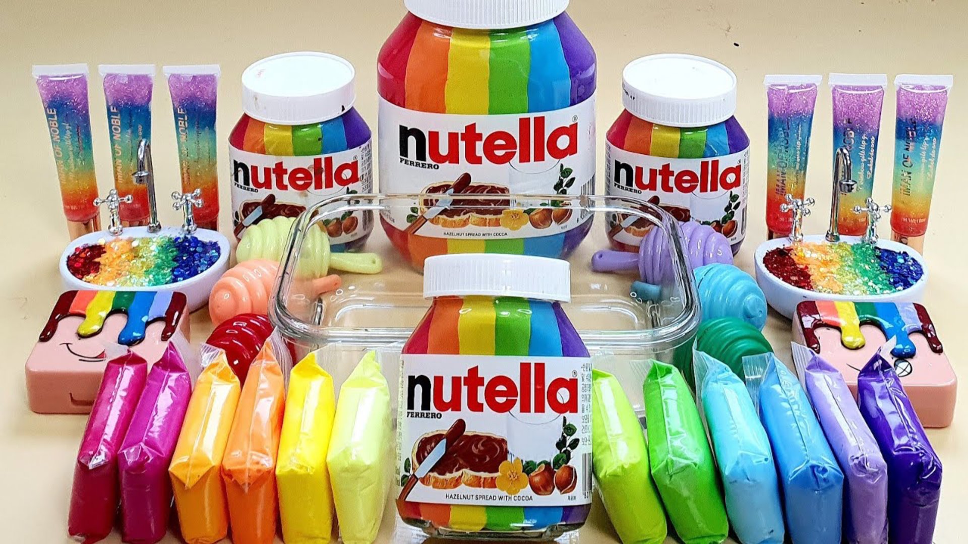 Самая Радужная Нутелла которую я видела, Слайм с Нутеллой ASMR