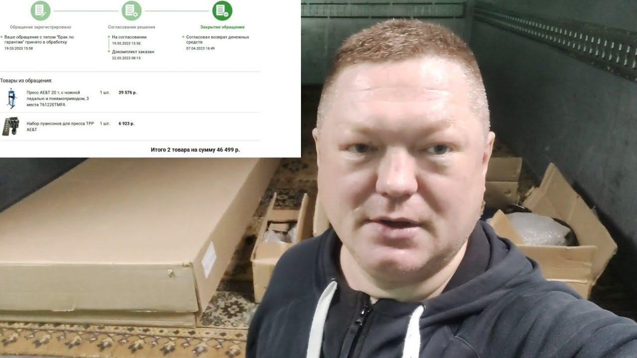 Вернул пневмогидравлический фирмы AE&T в магазин, где приобретал данный товар. В магазине мне был предоставлен акт приёма-передачи, после осмотра товара. Написал заявление на возврат денежных средств. Так как интернет-магазин " Все инструменты", в котором приобретался товар, всесторонне старался решить возникшую проблему с качеством товара, то мне была предоставлена скидка на новый гидравлический пресс и пуансоны в размере 5 процентов. Огромное им спасибо за скидку. Это стало своего рода компенсацией за потраченное время, затраты на топливо и психологическое спокойствие. Всем спасибо за просмотр. Здоровья и до новых встреч.