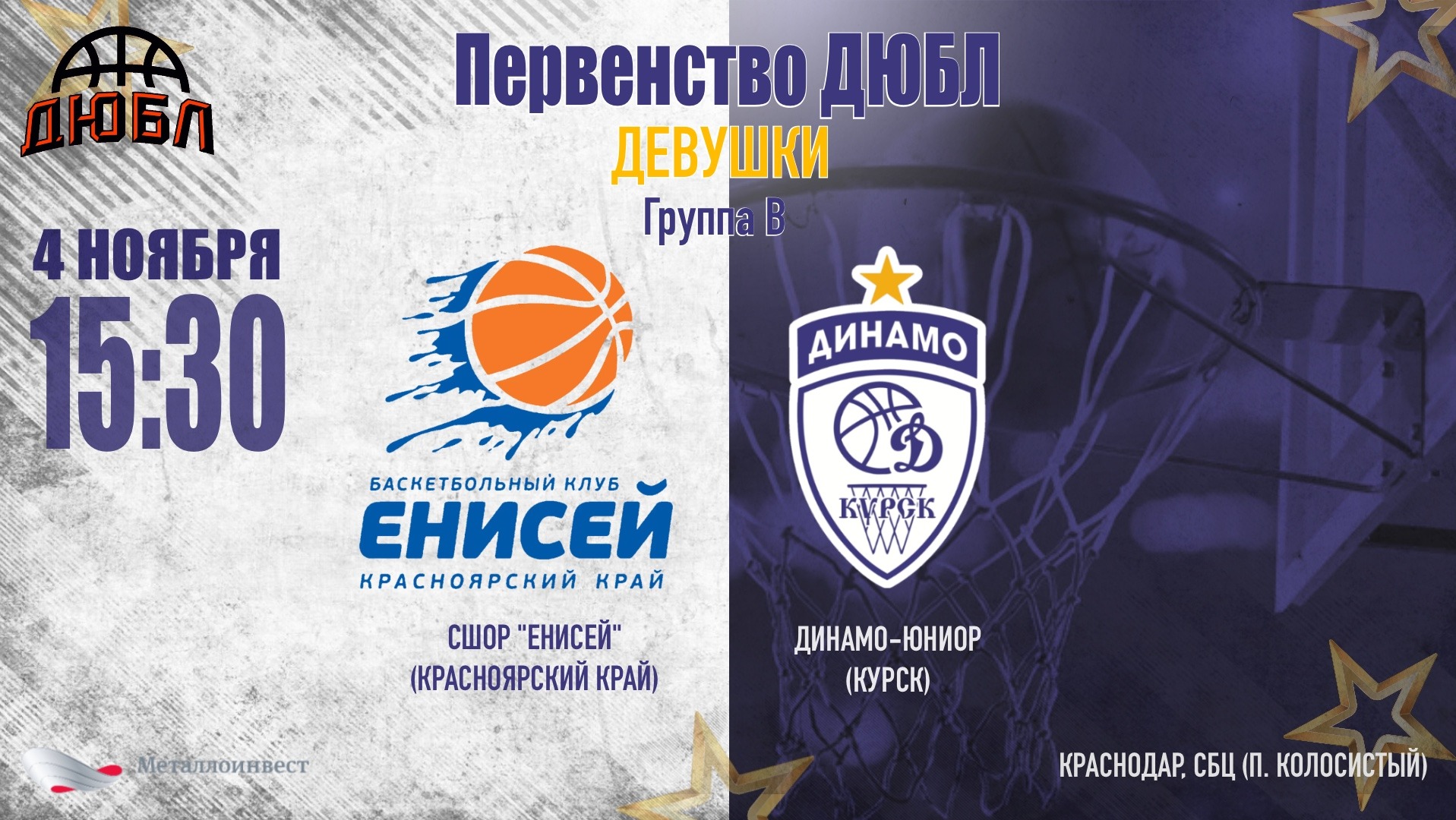 04.11.2023 15:30 СШОР Енисей (Красноярский край) - Динамо-Юниор (Курск) Сегодня 15:30, Краснодар, СБЦ (п. Колосистый) Девушки, Группа В | Краснодар | 02-07.11.2023 Статистика игры: https://russiabasket.ru/games/785982?apiUrl=https://org.infobasket.su&lang=ru