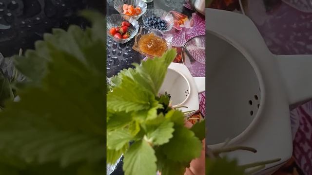 Чай из трав и варенье из ревеня .