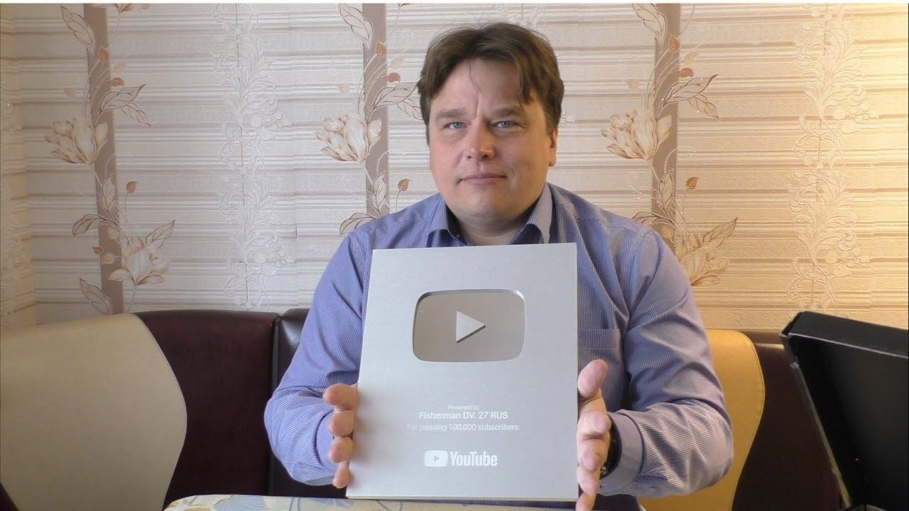 МОЯ СЕРЕБРЯНАЯ КНОПКА YouTube, за 100 000 подписчиков на канале fishermandv27rus
