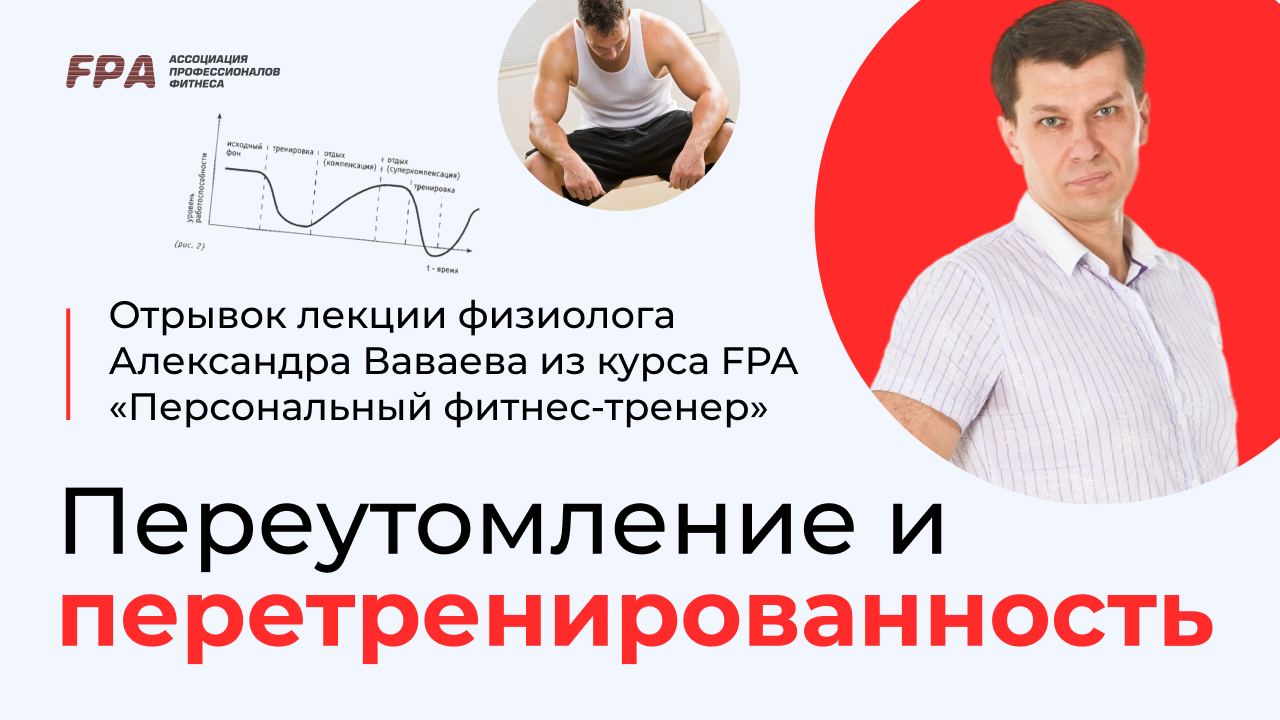 Переутомление и перетренированность. Отрывок лекции физиолога Александра Ваваева из курса FPA «Персональный фитнес-тренер». __________ Ассоциация Профессионалов Фитнеса (FPA) - лидер на российском рынке фитнес-образования. С 2000 года в FPA сертифицировано более 25 000 специалистов. Наши выпускники работают более чем в 1000 клубах Москвы, России и стран зарубежья 👉 http://fitness-pro.ru/ __________ Дистанционные программы обучения: – Персональный фитнес-тренер: https://bit.ly/39A06Xr – Фитнес-нутрициолог: https://bit.ly/37oC14n — Инструктор групповых программ: https://bit.ly/3AUq3ip – Детский фитнес: https://bit.ly/34OjT4B __________ Очные программы обучения: – Персональный фитнес-тренер: https://bit.ly/2ONTH2K – Инструктор групповых программ: https://bit.ly/2uFh3Re __________ Мы в соцсетях: ВКонтакте: https://vk.com/fpafpa Telegram-канал: https://t.me/trenerskayaFPA Telegram-чат для тренеров: https://t.me/trenerskayaFPAchat Яндекс.Дзен: https://zen.yandex.ru/fitness_pro_ru