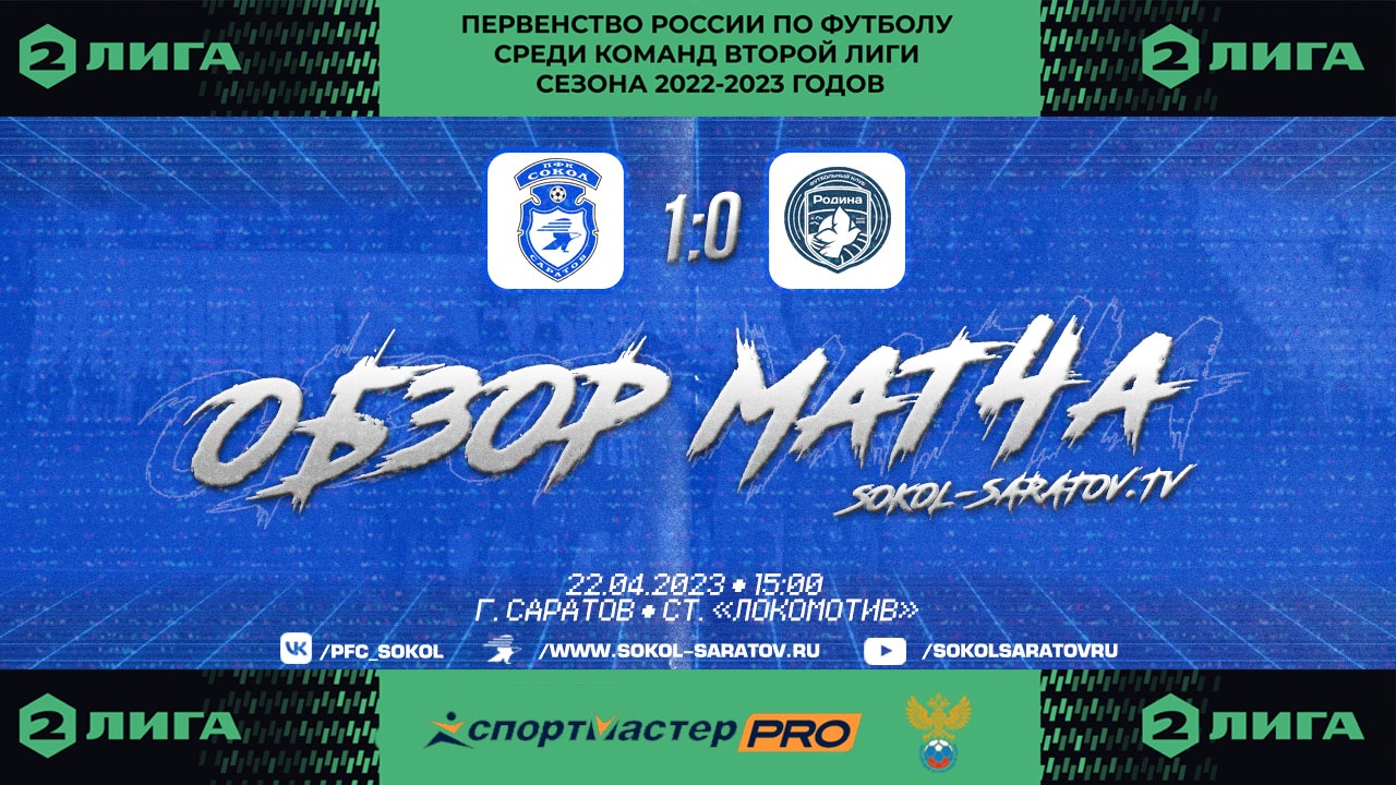 Обзор матча "Сокол" - "Родина-2" 1-0 (1-0). 22.04.2023г.