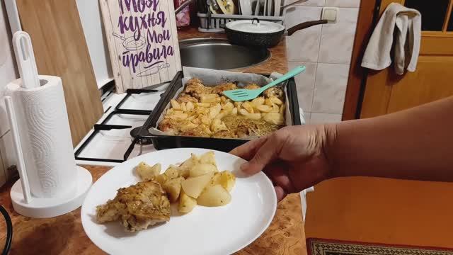 Нежная курица в кефире с картошкой в духовке. Вкусные куриные бёдра в духовке. Очень просто но очень вкусно. + курица - 1.6 кг. + кефир - 450 мл. + картофель - 1.2 кг. + лук репчатый - 1 шт. + чеснок - 4 зубка. + соль, специи - по вкусу.