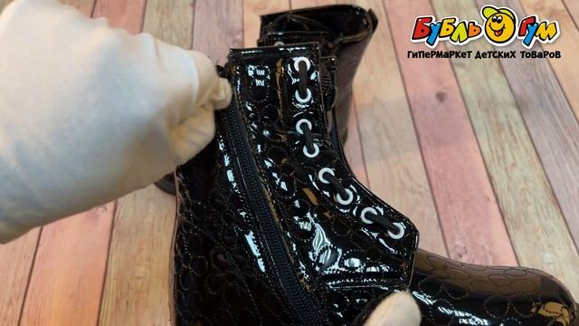 335097 Ботинки Pasito утепленные на молнии со строчкой в цветочек черные