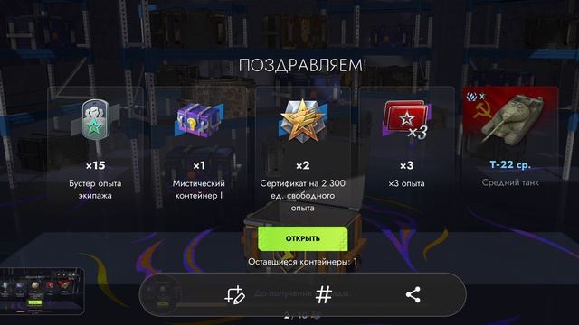 World of Tanks Blitz 3 контейнера собери их все, мне выпал танчик Х🙂
