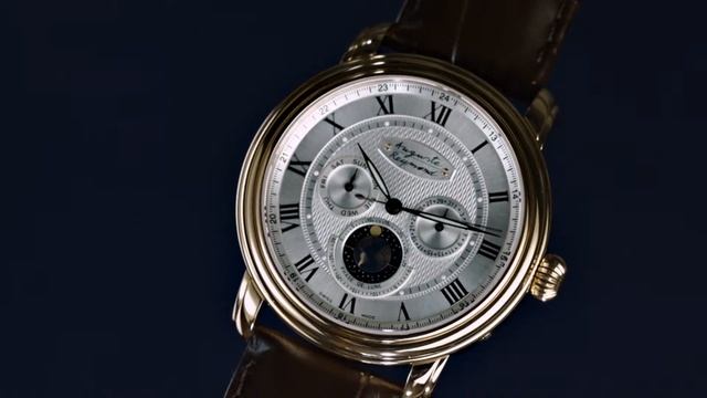 Swiss watch with unique moon day module, patented by Auguste Reymond
