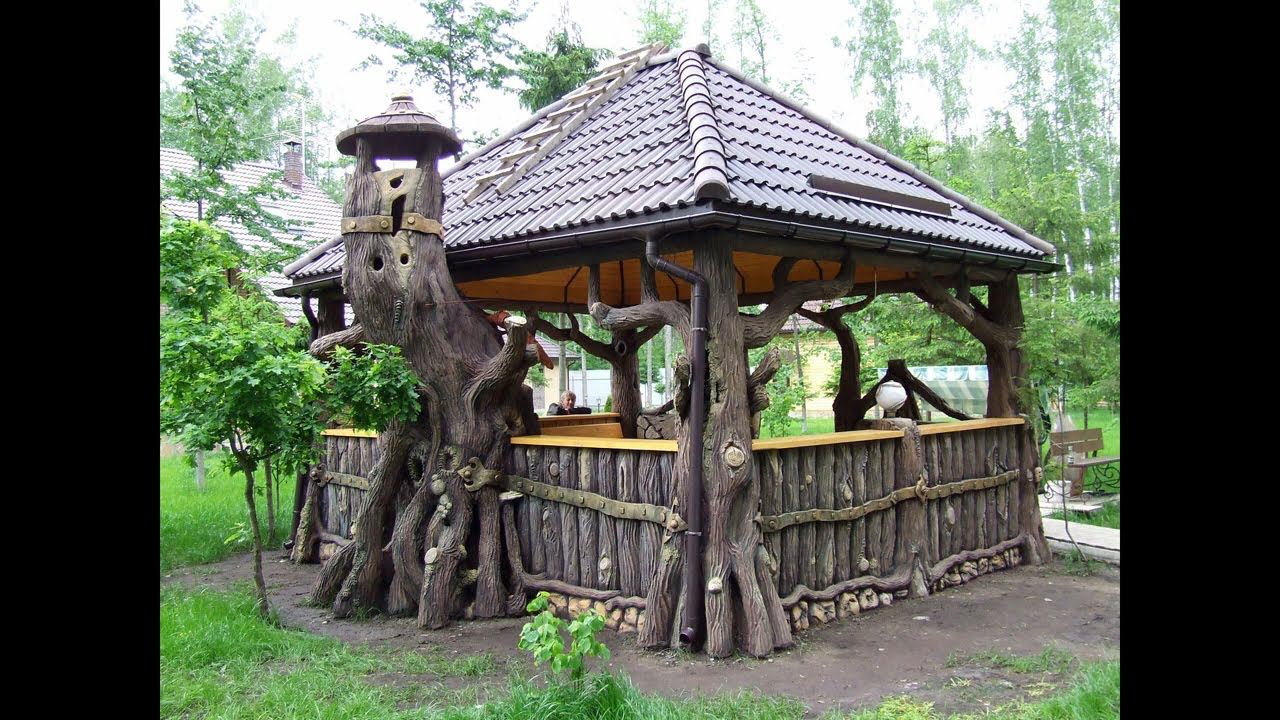 Беседки для отдыха из арт бетона декоративная штукатурка имитация деревьев мастер Юра