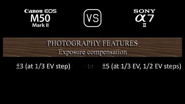 This video overviews the Canon EOS M50 Mark II and the Sony A7 II in a parallel comparison of specifications. Thanks for watching. If you liked this video and found it informative, make sure to subscribe for more. 00:24 LAUNCH 00:32 BODY 00:41 SENSOR 01:05 IMAGE 01:21 OPTICS & FOCUS 01:50 SCREEN 02:10 VIEWFINDER 02:26 PHOTOGRAPHY FEATURES 03:27 VIDEOGRAPHY FEATURES 03:43 STORAGE 03:47 CONNECTIVITY 04:16 PHYSICAL 04:36 MISC