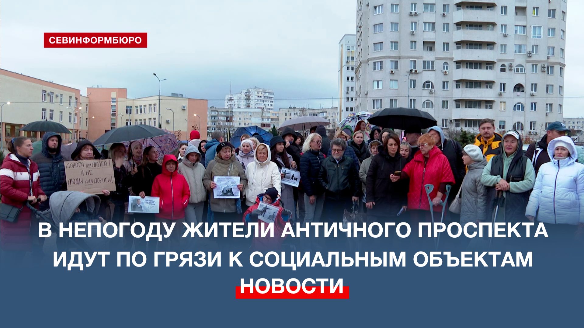 В непогоду жители Античного проспекта вынуждены идти по грязи к объектам социальной инфраструктуры. На протяжении многих лет севастопольцы пробираются через пустырь, чтобы добраться до учебных заведений, поликлиники, работы или остановки общественного транспорта. Ситуацию осложняет строительство новой дороги, где устанавливают ограждения, и обильные осадки, превратившие в болото ставшую привычной для людей тропу. А путь в обход – это крюк длиной почти в 1 километр.