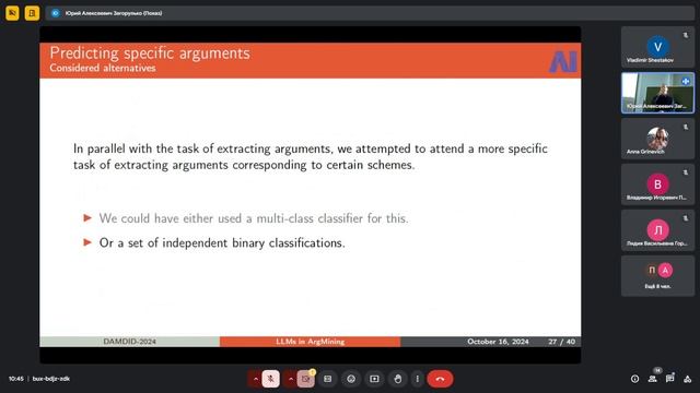 Докладчик: Серый Алексей Сергеевич Тема: Применение генеративных нейронных сетей для извлечения аргументативных отношений из текстов научной коммуникации