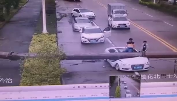 Вот это реально повезло водителю - чуть дальше подъехал бы или столб чуть левее... #падение #ауди #столб