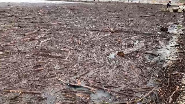 В Туапсинском районе Чёрное море превратилось в коричневое — ливни принесли грязь, и вода стала мутной. Зато туристы продолжают загорать, словно ничего не случилось