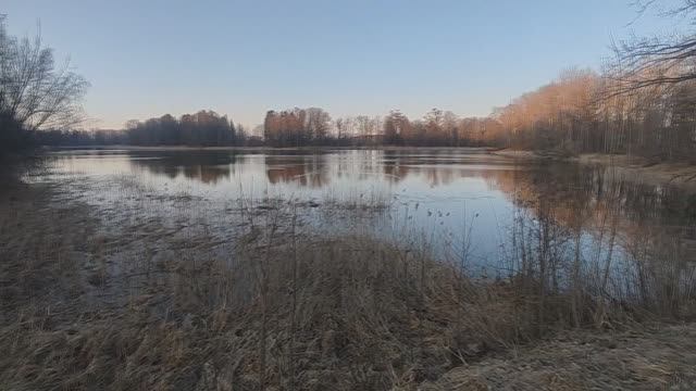 Ивановский пруд и вечерний таймлапс Луны на фоне Ропшинского Ивановского пруда. Ропша.
