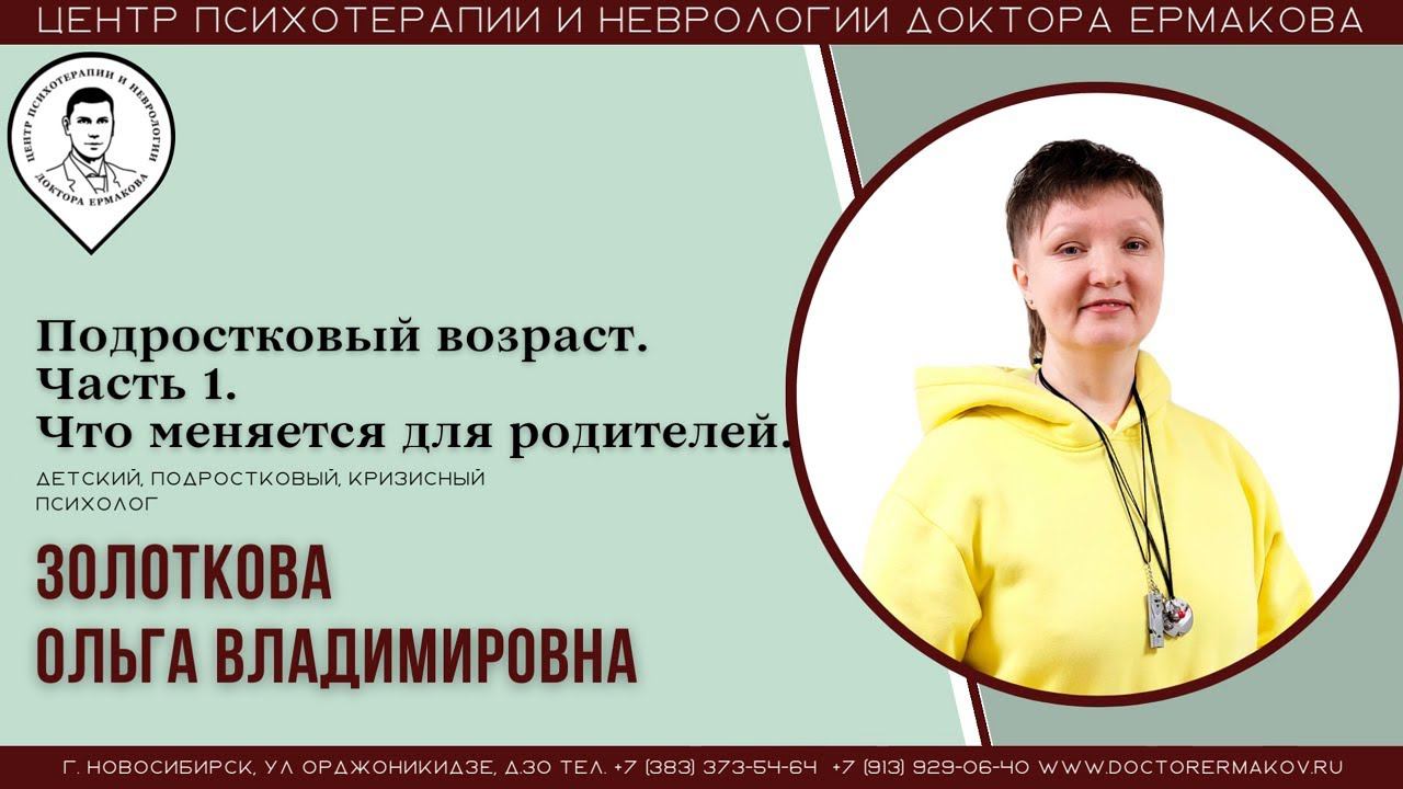 "Подростковый возраст. Что меняется для родителей" ч1. Золоткова О.В.
