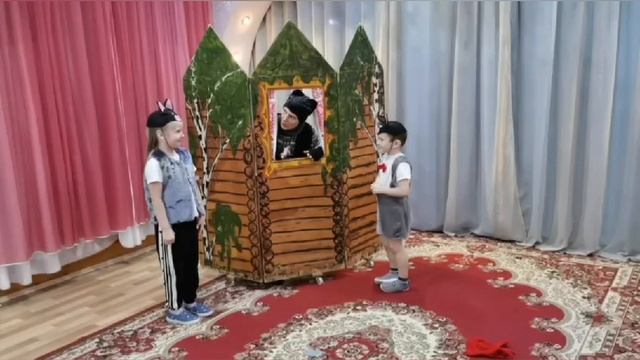 Воспитанники группы "Совята" и их родители представляют сценку по стихотворению С.Маршака "Перчатки"
