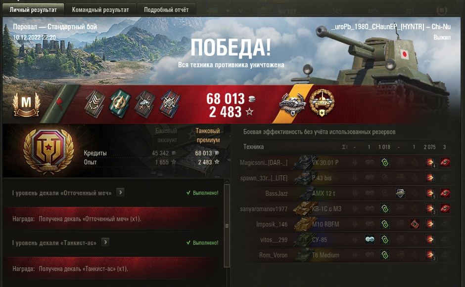 ПЕРЕВАЛ МАСТЕР на Type 3 Chi-Nu ОПЫТ: 1103 СУММАРНЫЙ УРОН: 3093 медали ЛЕХВЕСЛАЙХО и КАЛИБР