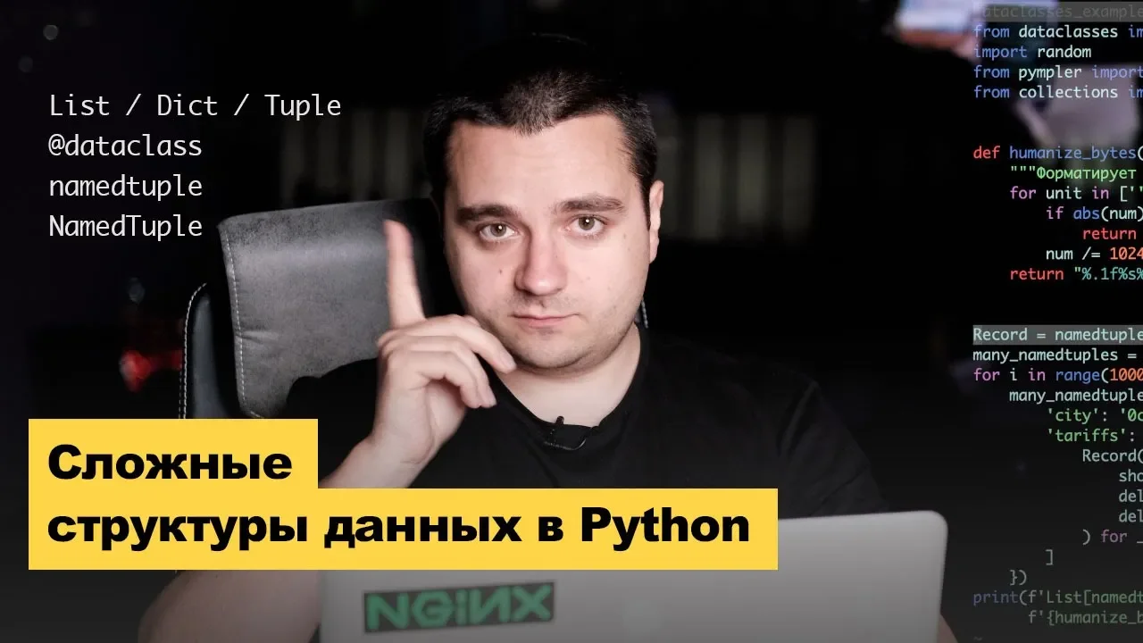 Запущен первый курс мощной образовательной программы от Диджитализируй: «Основы компьютерных и веб-технологий с Python» Вся информация и запись на курс здесь: https://to.digital/course01 Книжный клуб Ботаним!, где мы читаем хорошие ИТ-книги: https://botanim.to.digital/ Мой курс «Основы компьютерных и веб-технологий с Python»: https://course01.to.digital/ Telegram: https://t0digital.t.me Сказать спасибо за это видео можно здесь — https://boosty.to/digitalize.team Сложные структуры данных часто возникают в проектах, реализующих сбор и обработку разносортных данных, как правило это многоуровневые вложенные массивы и словари. Работать с такими структурами непросто, но в Python есть отличные встроенные инструменты, позволяющие снизить сложность работы, улучшить читаемость и поддерживаемость кода, облегчить разработку в IDE, а также снизить объём используемой оперативной памяти. В видео мы поговорим о разных подходах и сравним их эффективность — List/Dict, dataclass, tuple, collections.namedtuple, typing.NamedTuple. Код из видео — https://github.com/alexey-goloburdin/youtube-python-structures Поднимаем Debian сервер для Python/Django — установка и настройка с нуля. Как настроить сервер? — https://www.youtube.com/watch?v=FLiKTJqyyvs Основы LaTeX для тех, кто ещё не пробовал. Зачем он в 2019? Урок LaTeX — https://www.youtube.com/watch?v=8dCm1V1XDzw Разрабатывать в Vim или в IDE? Vim vs IDE — https://www.youtube.com/watch?v=yog7sNQOryM #ityoutubersru /****************** about ******************/ Меня зовут Алексей Голобурдин, я программирую с 2004 года и на этом канале делюсь своим опытом. Я основатель и руководитель компаний: — Диджитализируй https://digitalize.team, разрабатываем сложные IT системы для бизнеса; — Salesbeat https://salesbeat.pro, комплексный модуль доставки для интернет магазинов. Если у вас есть проект на разработку, пишите нам на hi@digitalize.team. С другими предложениями, а также если вам нужна одна или несколько индивидуальных консультаций/уроков по разработке (3000 руб/час), пишите мне на alexey@salesbeat.pro. Мои соц сети: Telegram канал — https://t.me/t0digital ВК — https://vk.com/digitalize.team Дзен — https://zen.yandex.ru/id/6235d32cb64df01e6e78c883