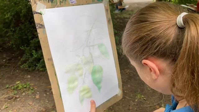 Урок пленэра в Москве художественной школе Империя Пикчер г. Краснодар. Этюд листьев дерева ореха. 2 класс. - #империяпикчер #imperiapikcher
