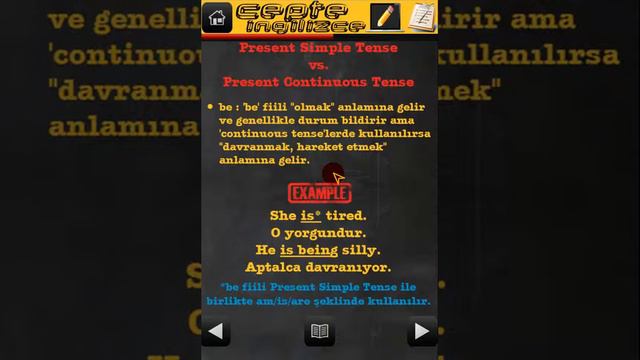 Present Simple Tense & Present Continuous Tense konularında bazı noktalar Türkçe olarak düşünüldüklerinde kafa karışıklığına sebep olabilirler. Present Simple Tense & Present Continuous Tense farkını temelden ele alan bu eğitim videosunu izledikten sonra konu ile ilgili soru çözüp bu dersin notlarına göz atmak isterseniz : https://ucretsizingilizceders.com/present-simple-tense-present-continuous-tense/ İngilizce sınavlara hazırlanmak için aşağıda bulunan diğer içeriklere de göz atabilirsiniz. Ders Notları - Alıştırmalar: ELEMENTARY (A1-A2) seviyesinde İngilizce konuları için: https://bit.ly/3wkAHl4 PRE-INTERMEDIATE (A2-B1) seviyesinde İngilizce konuları için: https://bit.ly/48f8sSc YKS - YDS - YÖKDİL seviyesinde TENSELER için: https://bit.ly/3UOtGU1 YKS - YDS - YÖKDİL seviyesinde PRONOUNS-POSSESIVES için: https://bit.ly/4bIT4Ak YKS - YDS - YÖKDİL seviyesinde MODALS için: https://bit.ly/4bFiq24 YKS - YDS - YÖKDİL seviyesinde ACTIVE-PASSIVE-CAUSATIVES için: https://bit.ly/3OLg9Zx YKS - YDS - YÖKDİL seviyesinde ADJECTIVES-ADVERBS için: https://bit.ly/3wrfllY YKS - YDS - YÖKDİL seviyesinde COMPARISON için: https://bit.ly/3uI8kg8 Oynatma Listeleri: ELEMENTARY (A1-A2) Seviyesinde diğer İngilizce konuları için: https://bit.ly/3TC7LLZ PRE-INTERMEDIATE (A2-B1) Seviyesinde diğer İngilizce konuları için: https://bit.ly/3yDHPHA YKS - YDS - YÖKDİL seviyesinde TENSELER için: https://bit.ly/3CXXYdD Shorts'a yüklenen soru çözümleri için: https://bit.ly/3TaGG26 Cepte İngilizce uygulamasını yüklemek için : https://bit.ly/3SeUoAh Tüm ders videoları, konularla ilgili soru çözümü ve notlar için web sitemiz: https://ucretsizingilizceders.com/ Günlük ipuçları ve soruların paylaşıldığı Instagram hesabımız: https://www.instagram.com/cepte_ingilizce/