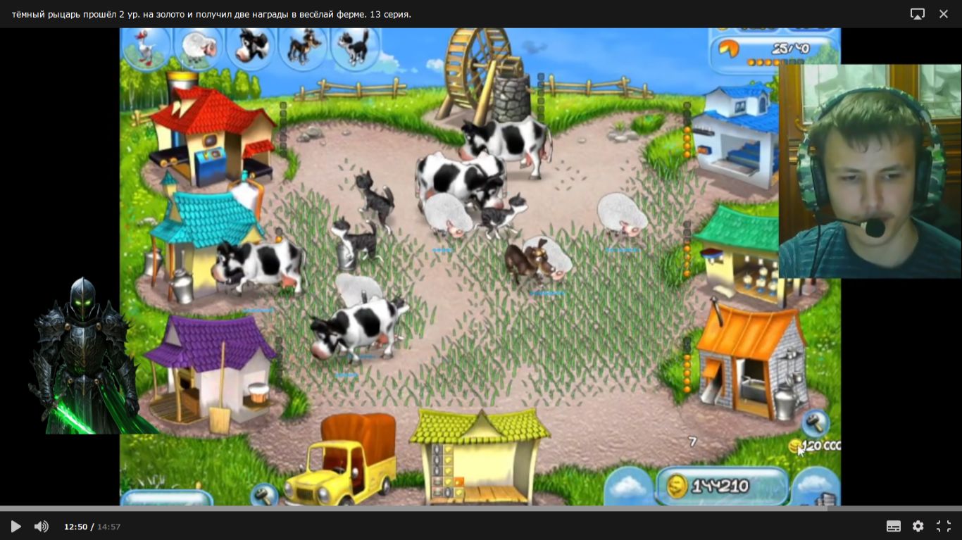 тёмный рыцарь прошёл 2 ур. на золото и получил две награды в весёлай ферме. 13 серия.