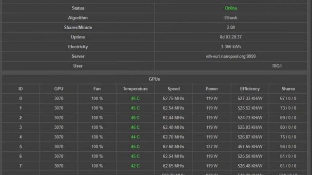 Mining rig 8 x GIGABYTE RTX 3070 8GB GDDR6X 500MH/s