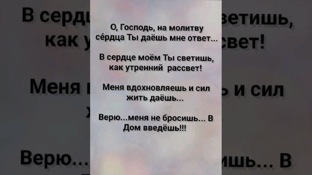 ХРИСТИАНСКИЕ ПЕСНИ ДЛЯ ХВАЛЫ ПОКЛОНЕНИЯ ПРОСЛАВЛЕНИЯ ВООДУШЕВЛЕНИЯ ЕВАНГЕЛИЗАЦИИ ДУХОВНОГО РОСТА ПРОБУЖДЕНИЯ ВОЗРОЖДЕНИЯ #господь#музыка#христианская_музыка#музика#христианскиепесни#бог#христианскиестихи#любовь#христианство#стихи#песня#песни#иисус#иисусхристос#иисусмойбог#иисус_христос#иисусбог#иисусгосподь#хвалы_и_поклонения#хваление#хвала#прославление#духсвятой#духовныйрост#духовноепробуждение#духовность#евангелие#евангелизация#евангельскаявесть#духовный_рост#пробуждение#рождество#рождествохристово#божий#божийнарод#божьеслово  #ХристианскаяПесня #ХристианскоеПоклонение #ХристианскаяНоваяПесня #ПастырьМоейДушы #ХристианскаяМузыка #ПесняСлавы #Иисус #ЛюбовьБожья #ХристианскиеТексты #СлаваГосподу #ВераИПоклонение #ВечнаяЛюбовь #RussianChristianSong #RussianChristianWorship #RussianChristianMusic #RussianWorship #NewRussianChristianMusic  #RussianChristianMusic #RussianSongOfPraise #Jesus #GodsLove #ChristianLyrics #GloryToGod #RussianFaithAndWorship #EternalLove https://stihi.ru/avtor... "ВЕРЮ!!!" СЛОВА, МУЗЫКА, ОБРАБОТКА: ЖАННА ВОЛКОВА-ВАРЛАМОВА Стихи Жанна Юрьевна Волкова-Варламова https://stihi.ru/2025/... Куплет 1 Ты...Только Ты, знаешь в чём я нуждаюсь...  Ты - Солнце, в лучах которого я исцеляюсь!  Ты - Щит мой, Господь... Ты - моя Благодать! Дай в силе чудес Тебя, Бог, мне испытать!!!  Припев О, Господь, на молитву се́рдца Ты даёшь мне ответ... В сердце моём Ты светишь, как утренний  рассвет!  Меня вдохновляешь и сил жить даёшь...  Верю...меня не бросишь...В Дом введёшь!!!  Куплет 2 Ты -  Свет во тьме... Ты - Живое пламя в ночи...  Теплом Своим коснулся Ты моей души!  Моя душа в Тебе Огнём Святым пылает...  Ты - Тот, Кто ранами боль её исцеляет !!!  Припев О, Господь, на молитву се́рдца Ты даёшь мне ответ... В сердце моём Ты светишь, как утренний  рассвет!  Меня вдохновляешь и сил жить даёшь...  Верю...меня не бросишь... В Дом введёшь!!!  Куплет 3 Ты - мой рассвет...Ты мой тихий прибой...  Шепчешь нежно, что будешь со мной!  Когда я падаю, Ты меня поднимаешь...  С любовью ошибки мои исправляешь!!!  Припев О, Господь, на молитву се́рдца Ты даёшь мне ответ... В сердце моём Ты светишь, как утренний  рассвет!  Меня вдохновляешь и сил жить даёшь...  Верю...меня не бросишь... В Дом введёшь!!!  Куплет 4 Ты - крепкий Град ...В стенах укроешь...  Шаги направляешь...Путь мне устроишь!  Во все моменты жизни...В радость и боль... Тебе в сердце своём отдаю - главную роль!  Бридж  Когда гроза...Когда туманы... Когда чернота...  Ты, как Маяк мне дан, чтобы не шёл в никуда!  Кричу Тебе...Ищу Тебя...  Ведь, Ты - Помощь моя!!!  Припев О, Господь, на молитву се́рдца Ты даёшь мне ответ... В сердце моём Ты светишь, как утренний  рассвет!  Меня вдохновляешь и сил жить даёшь...  Верю...меня не бросишь... В Дом введёшь!!!  28.03.2025 Жанна Волкова-Варламова ___________________________________________