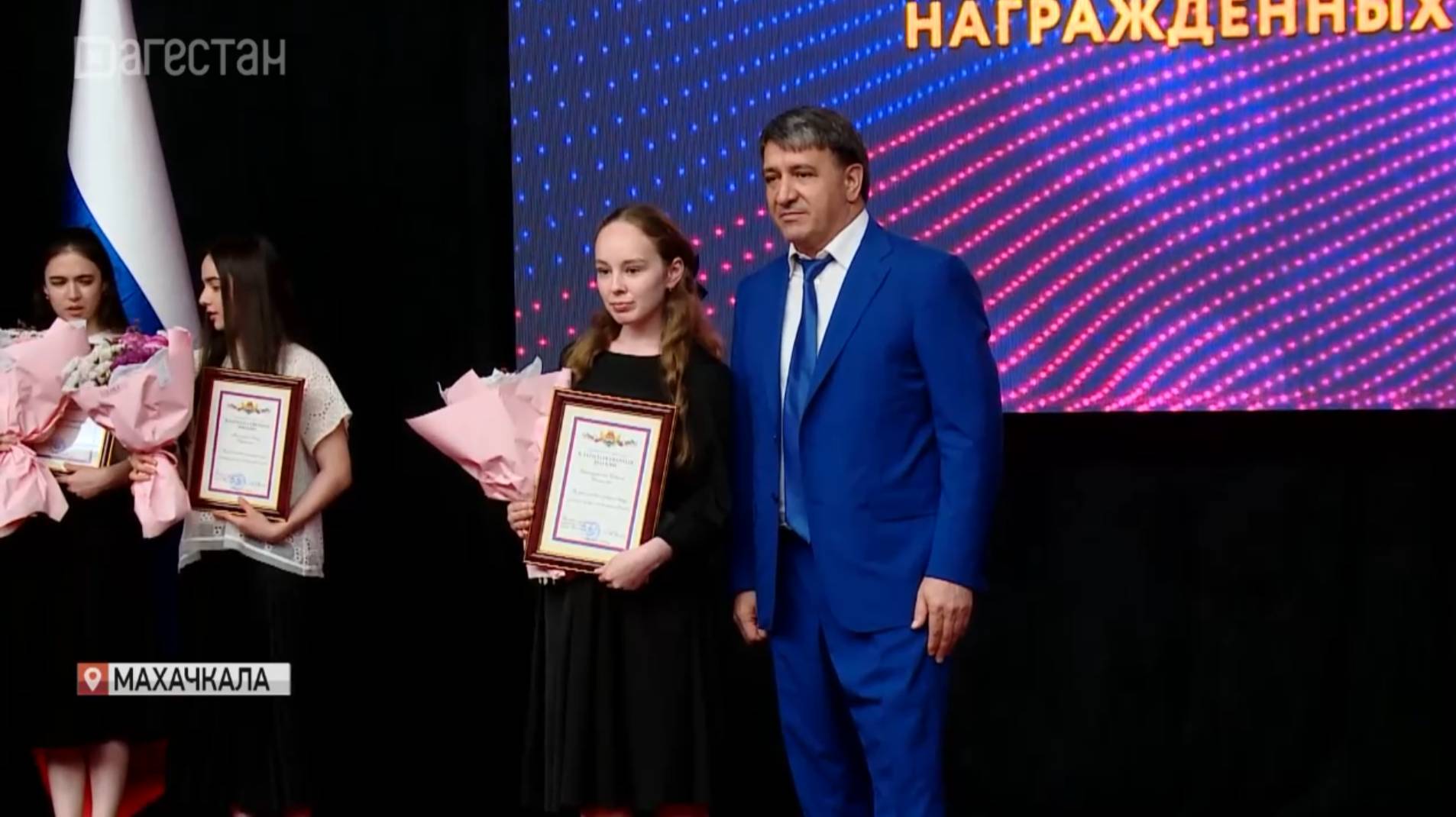 Об этом сообщил врио мэра столицы Дагестана Джамбулат Салавов на торжественном награждении школьников. Всего в этом году аттестаты получили 2 тыс. выпускников города. Из них более 500 отмечены медалями «За особые успехи в учении». Среди тех, кто заработал максимальный балл по госэкзамену – выпускница 9 лицея Фатима Рагимханова. Она прилежно училась с первого класса, отличница. Будущий врач, поступать планирует в дагестанский медуниверситет на лечебный факультет. К ЕГЭ готовилась два года, и ее труд окупился. СНХ: Также 150 школьников получили от 90 баллов и выше. Джамбулат Салавов поздравил будущих студентов и обратился к молодежи с напутствием.