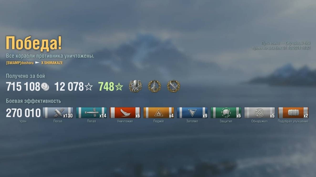 Эсминец Shimakaze. Игрок: doshoru (NA). Карта: Путь воина - Случайный бой. Урон: 270к. Shimakaze - Эсминец Япониии 10 уровня. #сезонконтентаRUTUBE