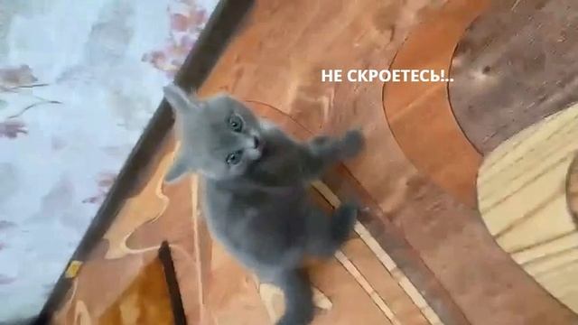 Котенок смело нападает на всех окружающих, не взирая на препятствия