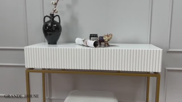 Туалетный столик Marsele белый в эмали мдф, на золотых ножках | Дизайнерская мебель GRANDE HOUSE