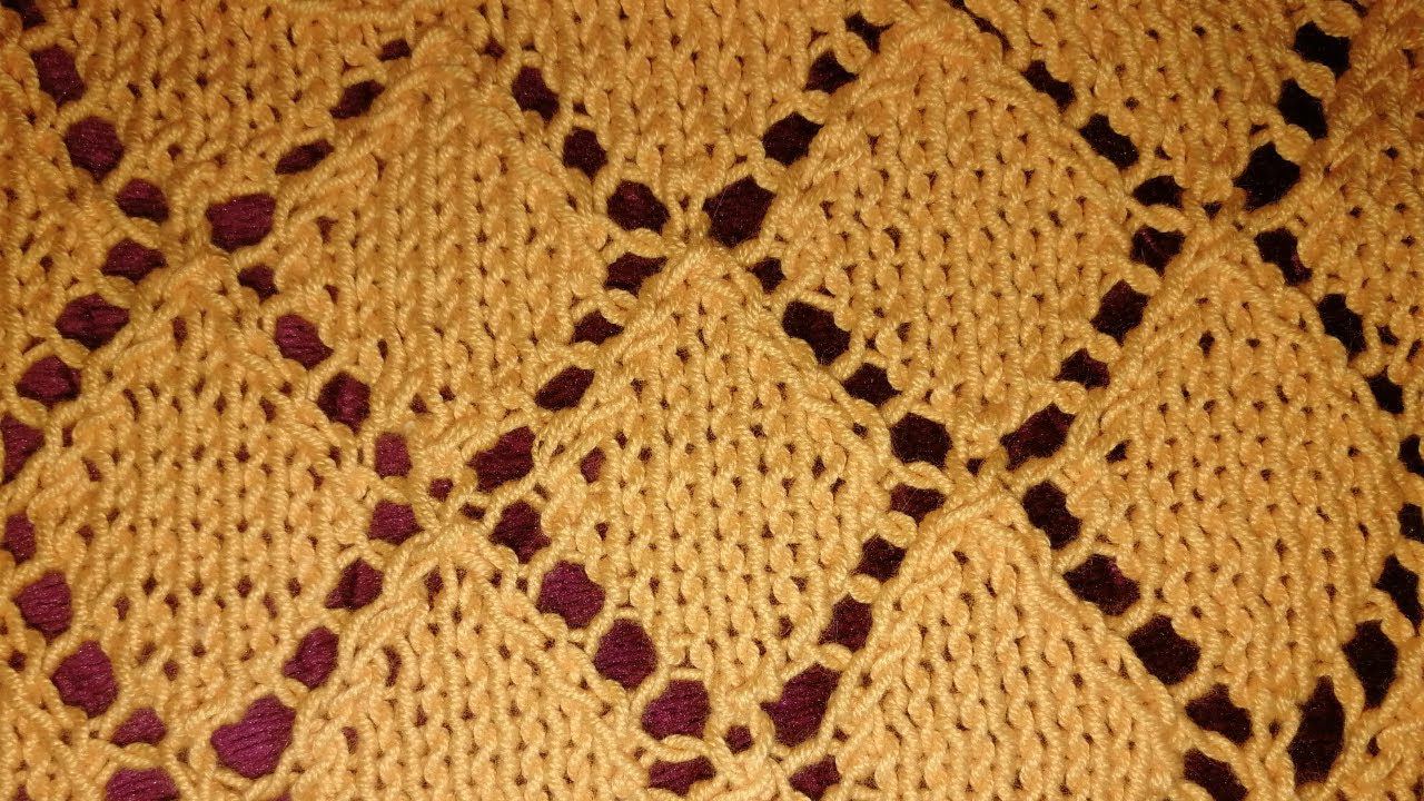 Простой ажурный узор РОМБЫ спицами