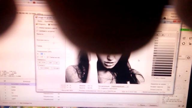 Получился качественный выжигатель с рабочим полем 450х500 мм. Указаны параметры скоростей и палитра для выжигания с примером работы.