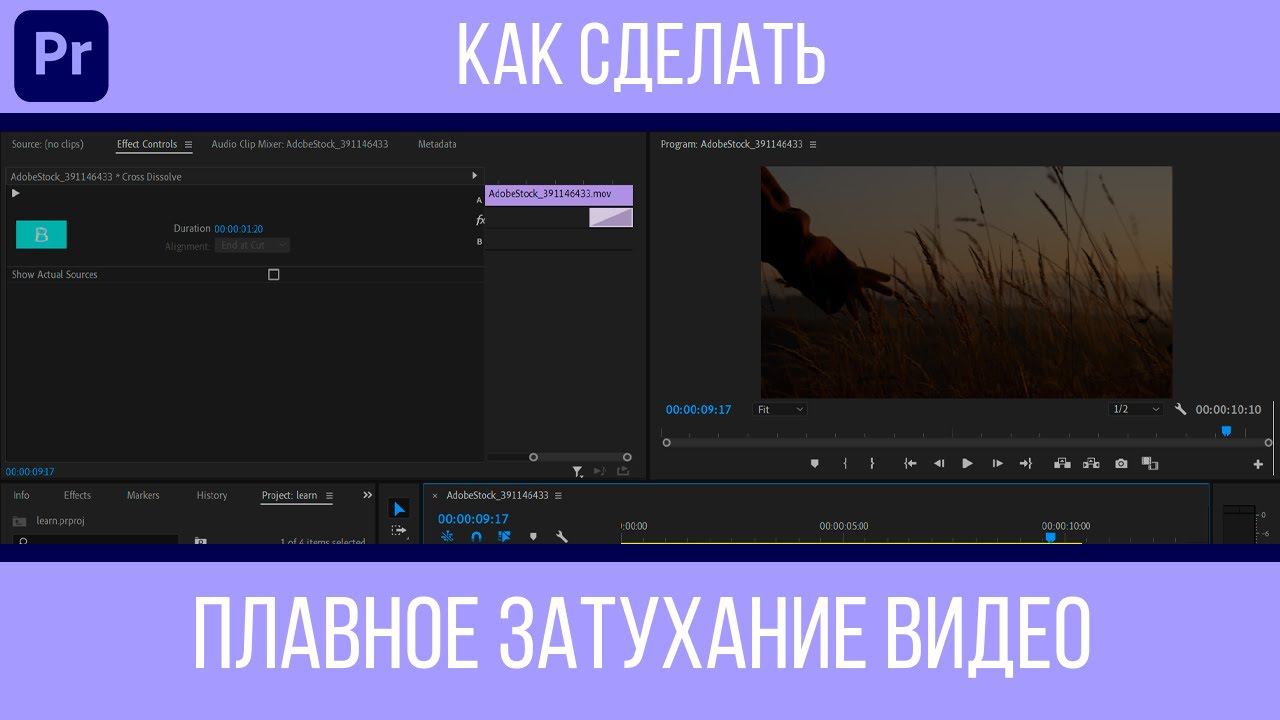Как сделать затухание видео в Premiere Pro №2