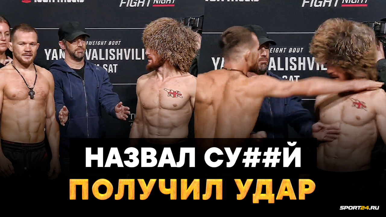 Битва взглядов Петра Яна и Мераба Двалишвили перед поединком закончилась потасовкой. Мераб назвал Петра с...й, Петр отреагировал. Их поединок в воскресенье утром возглавит турнир UFC в Вегасе.