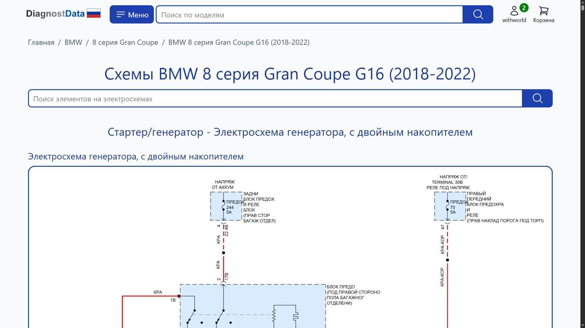 https://diagnostdata.ru/bmw/8-gran-coupe/g16-2018-2022/ Электрохемы, распиновки, схемы электропроводки BMW 8 серия Gran Coupe G16 (2018, 2019, 2020, 2021, 2022 годов выпуска) 3.0L TURBO Схемы на русском языке для систем: Схемы Стартер/генератор, Схемы Стартер/генератор, Схемы Блок предохранителей и реле, Схемы Приборная панель, Схемы Точки подключения масс, Схемы Сиденья, Схемы Кондиционирование воздуха, Схемы Электроусилитель руля, Схемы Фары, Схемы Вентилятор охлаждения, Схемы Электронная подвеска, Схемы Клаксон, Схемы Блокировка селектора, Схемы Предупреждение, Схемы Стеклоподъемники, Схемы Коробка передач, Схемы Управление зеркалами заднего вида, Схемы Магнитола, Схемы Подогрев стекол, Схемы Складная крыша/люк, Схемы Системы помощи водителю, Схемы Память, Схемы Антиблокировочная система abs, Схемы Круиз-контроль, Схемы Can шина, Схемы Фары и фонари, Схемы Багажник, задняя дверь, лючок топливного бака, Схемы Центральный замок, Схемы Дворники и омыватели, Схемы Сигнализация, Схемы Освещение салона, Схемы Блоки управления кузовом, Схемы Подушки безопасности, Схемы Двигатель, и др.